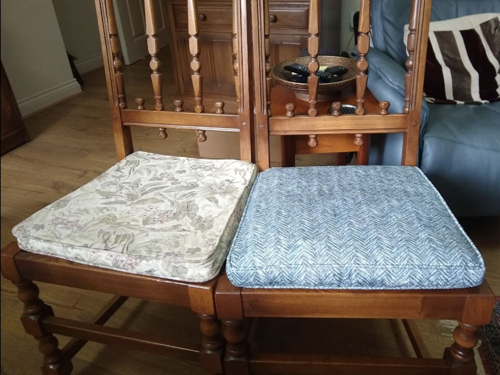 "We ordered new dining chair cushions and the service from start to finish was superb. Fabric samples arrived quickly, followed by a prepaid bag to return a sample cushion in, although that wasn’t needed in the end. I cannot recommend the friendly staff enough. Even delivery date was discussed to make sure it was convenient for us. Our old cushions were 40 years old and it’s easy to spot the difference on the before and after photos!"